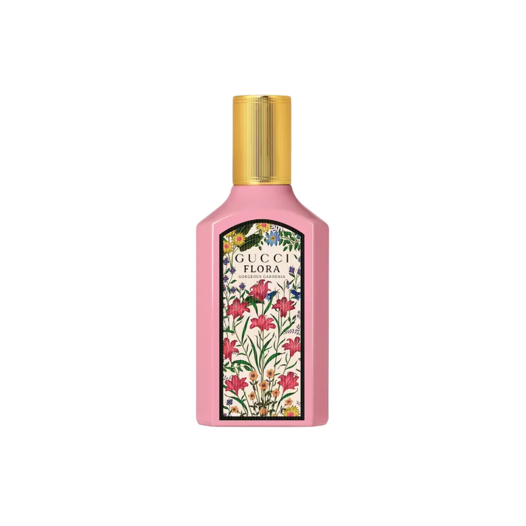 With this relaunch, Gucci Flora Gorgeous Gardenia gets a new bottle design, where the glass is lacquered in pink with a golden bottleneck. Gucci's iconic flora pattern, a painting with colorful flowers by the artist Vittorio Accornero created for Gucci in 1966, has now been redesigned according to Alessandro Michele's vision and adorns the center of the bottle.